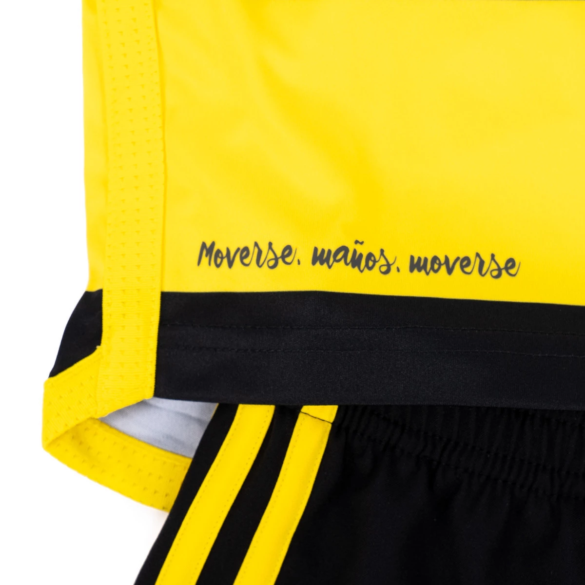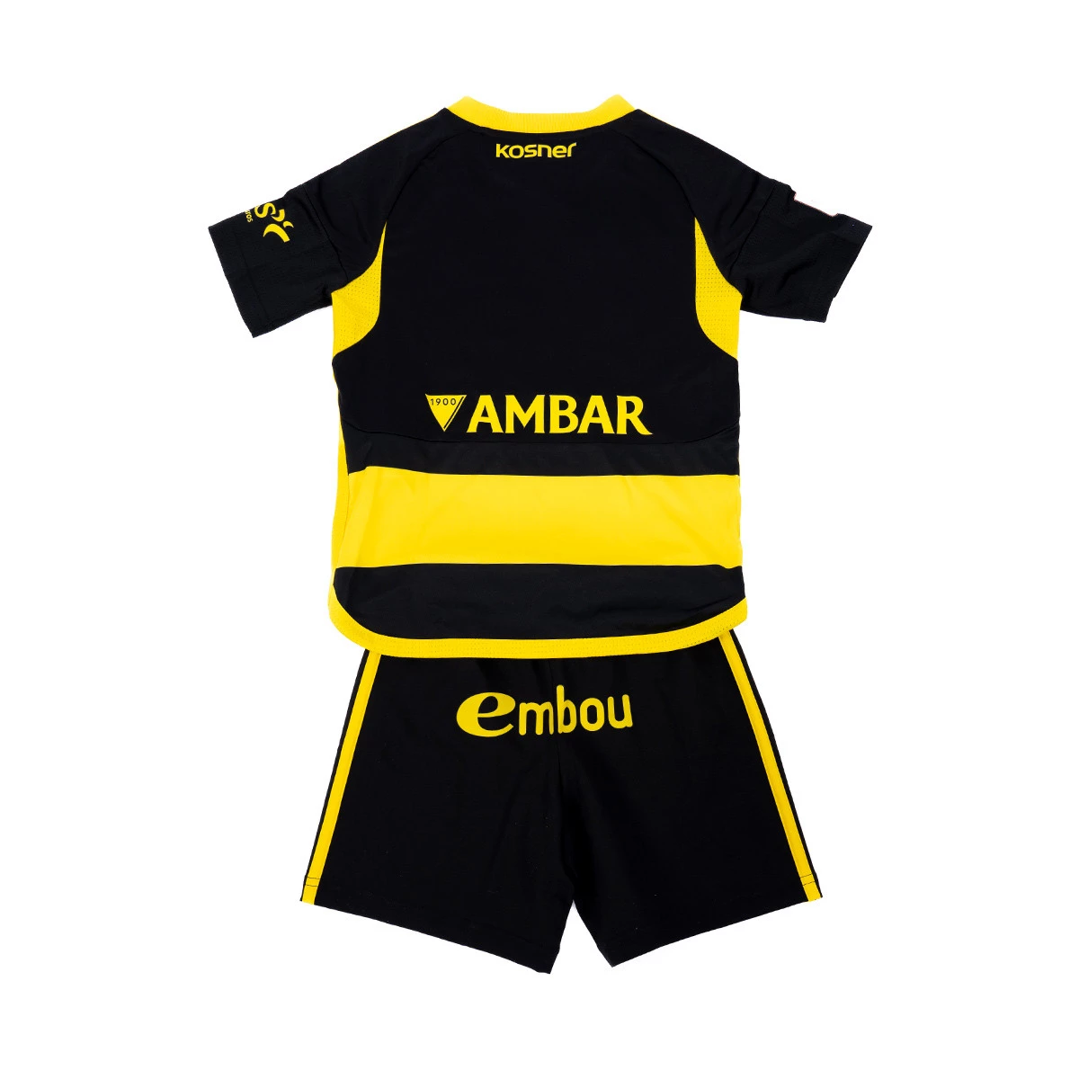 Kit extérieur de la saison 2023-2024 pour enfants. Maillot et short normal. Le maillot mythique d'Avista, mais cette fois-ci les rayures verticales donnent un coup de jeune et reviennent au style horizontal d'il y a quelques temps, maillot avec col rond et technologie AEROREADY, pour garder le joueur toujours au sec.