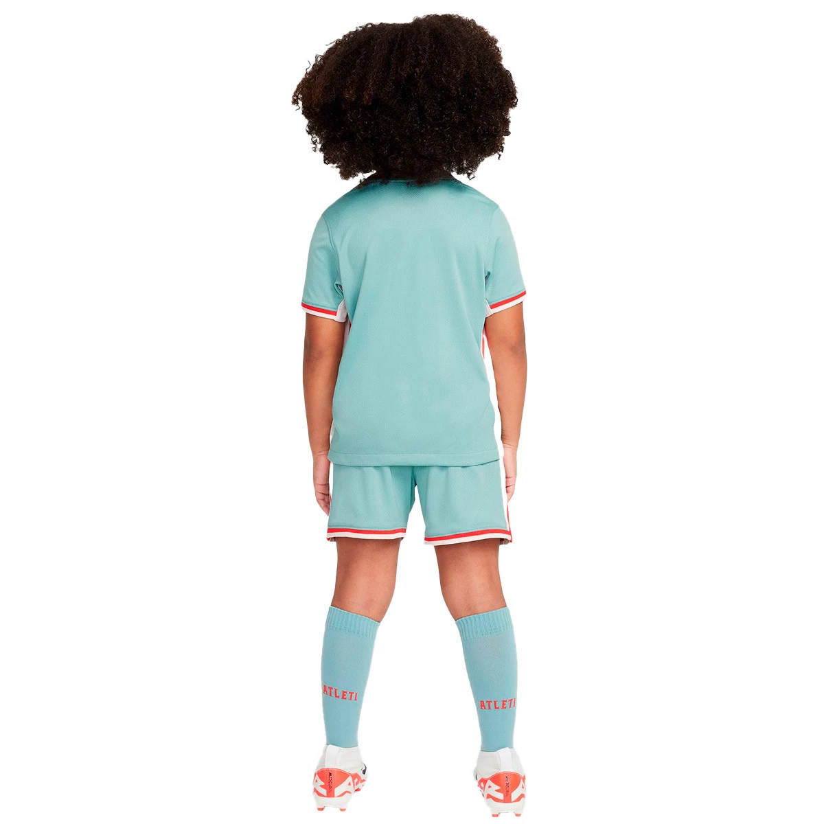 Maillot extérieur de l'Atlético de Madrid 2024-2025 pour enfant. Équipez vos futures petites stars d'un kit complet avec cet ensemble de trois pièces qui comprend un maillot d'équipe, un short et des chaussettes assortis.
