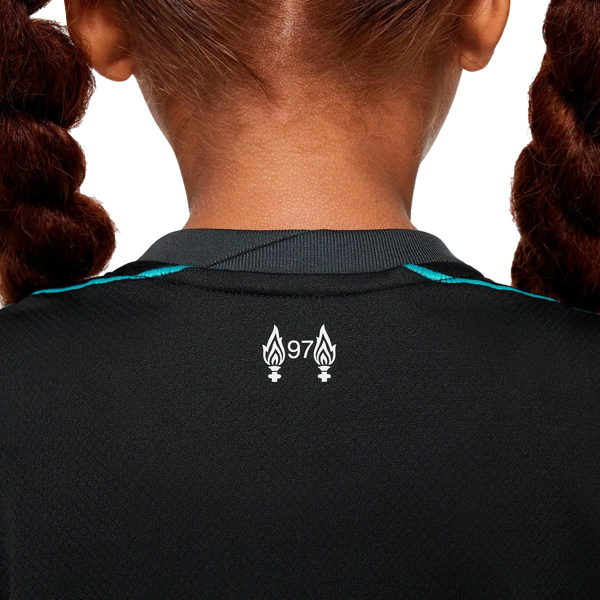 Habillez les futures petites stars avec le kit extérieur 2024-2025 du Liverpool FC pour enfant. Inspirée par ce que les pros portent pendant le match, notre collection Stadium est dotée d'un tissu léger qui évacue la transpiration pour que les jeunes athlètes soient à l'aise lorsqu'ils courent, se déplacent ou jouent.