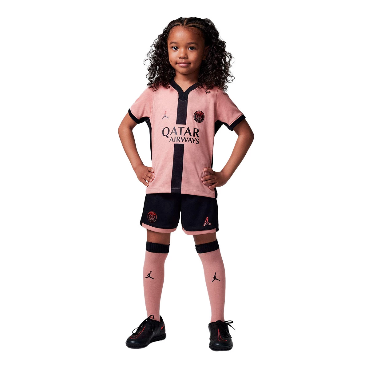 Troisième kit du PSG pour la saison 2024-2025 pour enfant. Habillez vos futures petites stars d'un ensemble complet avec ce kit trois pièces qui comprend un maillot d'équipe avec un short et des chaussettes assortis. Inspiré de ce que portent les pros sur le terrain, il est fabriqué dans un tissu léger qui évacue la transpiration pour aider les jeunes athlètes à se sentir à l'aise lorsqu'ils courent, font leur jogging ou jouent.