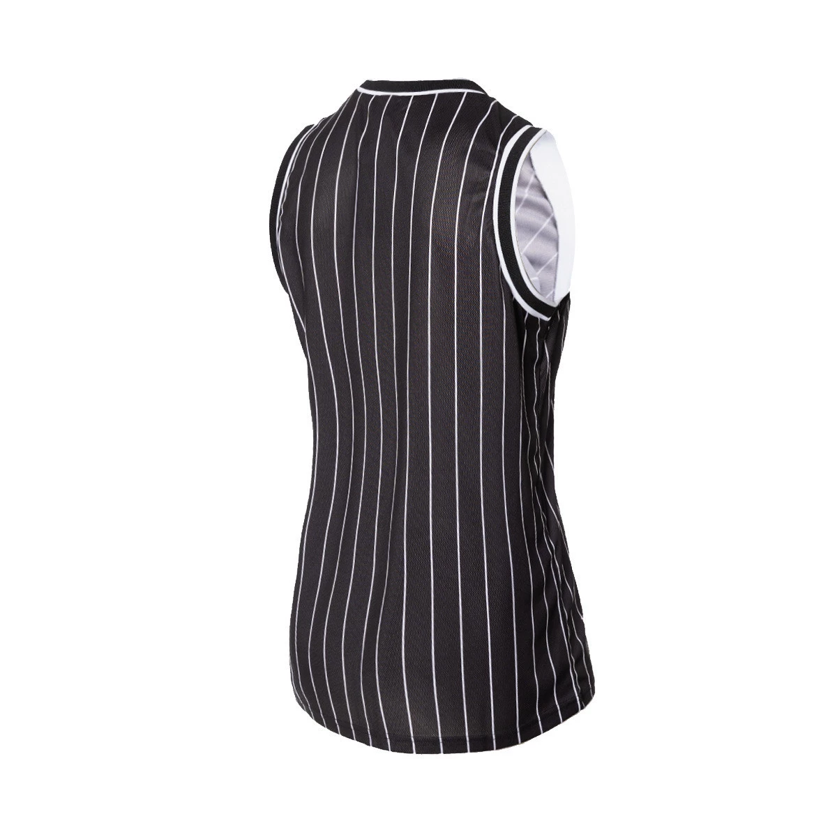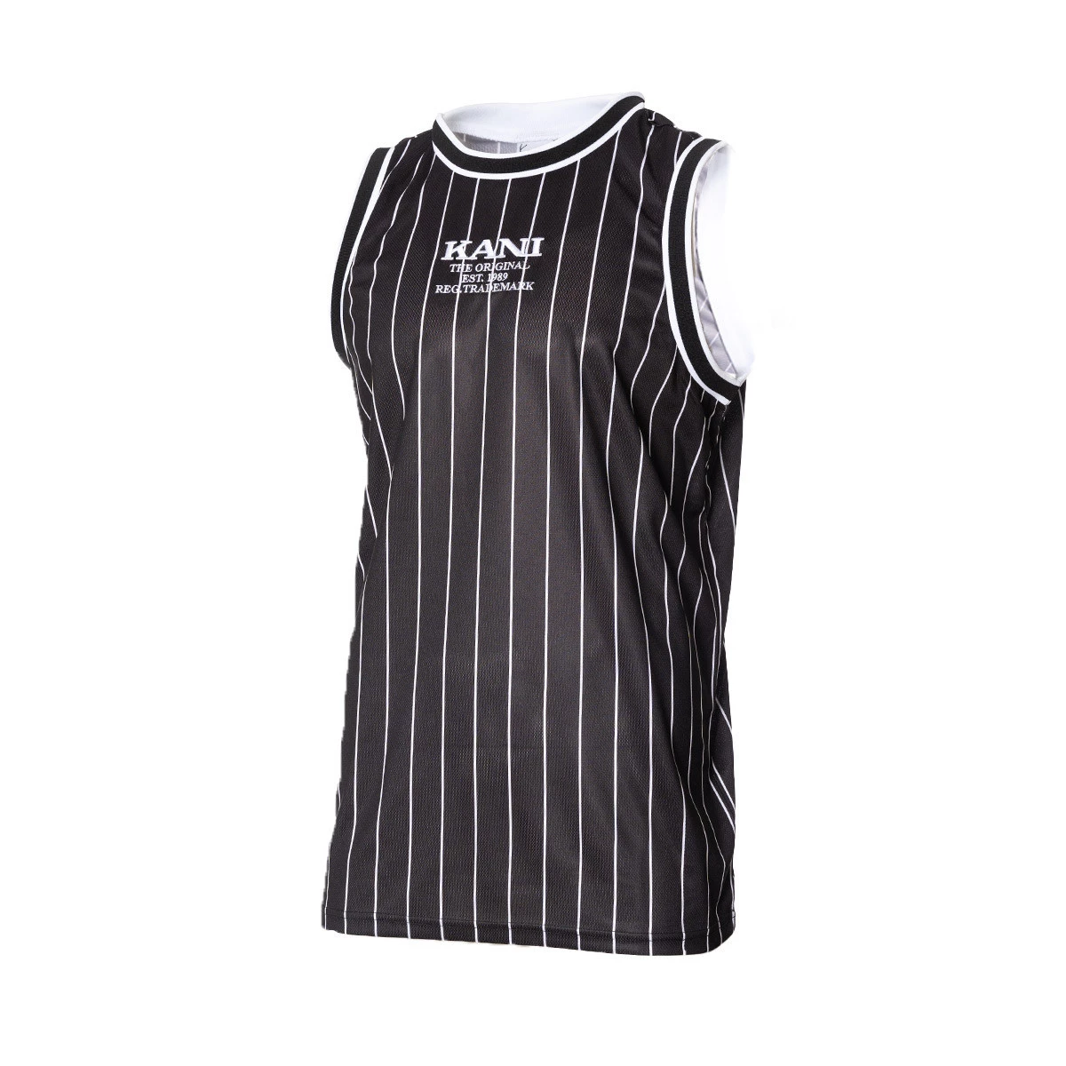 Karl Kani T-shirt Retro Pinstripes Basketball à col rond, bretelles et rayure diplomatique.
