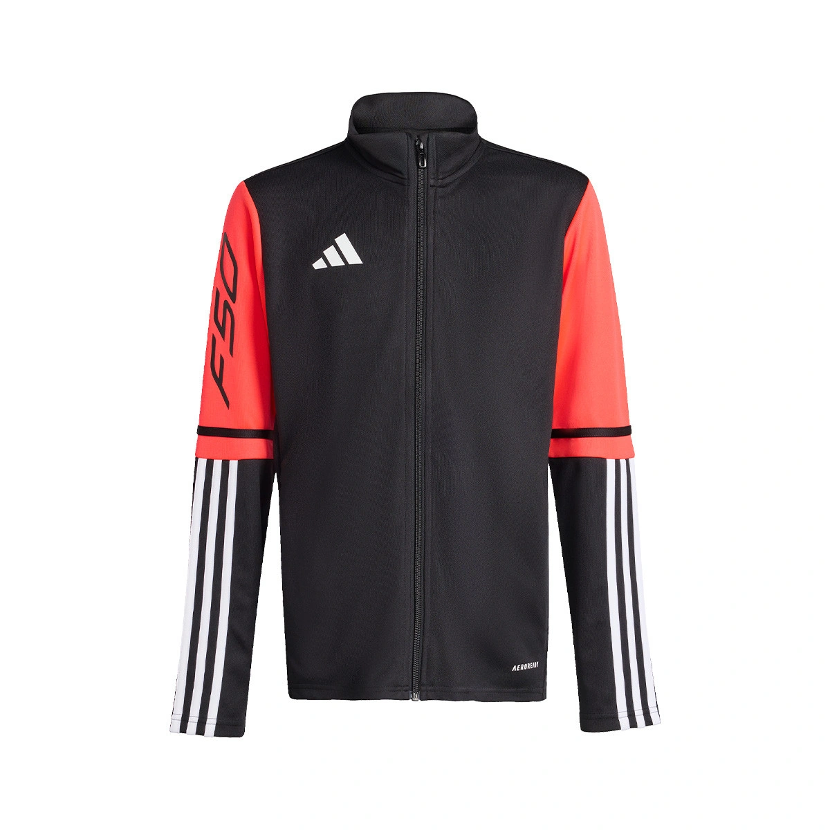Avec cette veste d'entraînement adidas F50 pour adolescents, tu n'auras pas peur d'accélérer le rythme à l'entraînement. Elle est confectionnée dans un tissu en maille léger et intègre la technologie AEROREADY, qui garde la peau sèche et assure le confort pour que rien ne t'arrête. L'imprimé F50 sur la manche montre que le football, c'est ton truc.