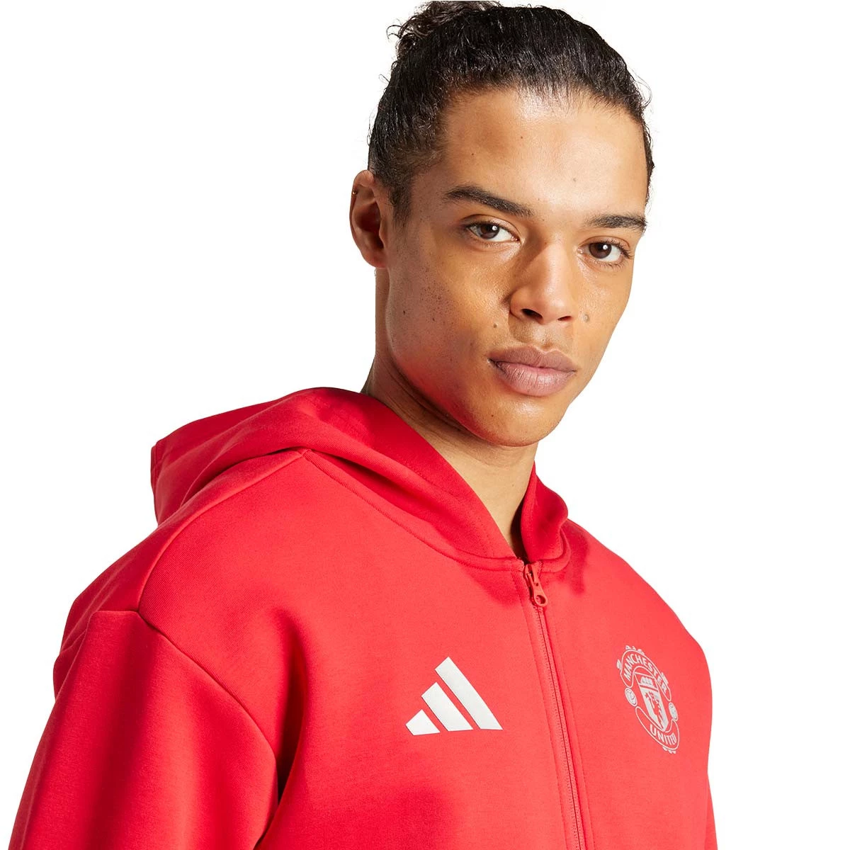 Mets-toi dans l'esprit de Manchester United avec cette veste de football adidas Red Devils ! Inspirée de la veste portée par les joueurs avant le coup d'envoi, cette veste est l'accessoire parfait pour montrer ton soutien à l'équipe. Dotée d'une fermeture à glissière et d'une capuche, elle t'offre protection et style en toute situation. L'écusson du club imprimé sur la poitrine est un symbole de ta passion pour Manchester United. Fabriquée en coton, cette veste est incroyablement confortable et parfaite pour les jours plus froids. Coupe classique Fermeture zippée et capuche Poches avant Écusson de Manchester United sérigraphié Maille double 66% coton / 34% polyester Ne pas sécher en machine Ne pas utiliser d'assouplissant Laver avec des couleurs similaires et des détergents doux Laver et repasser à l’envers Ne repassez pas les détails graphiques et imprimés Ne pas nettoyer à sec Ne pas utiliser de blanchisseur Lavage en machine à chaud