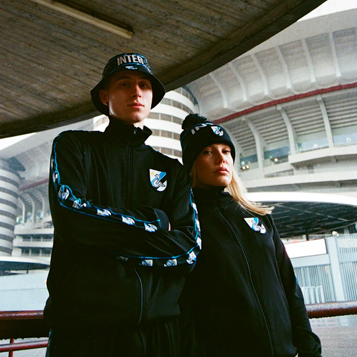 Copa présente la collection Inter Tape, un rappel élégant du passé du FC Internazionale. Les modèles présentent un ruban tissé cousu sur les épaules et le haut des manches, avec l'emblématique écusson du club brodé « Biscione ».