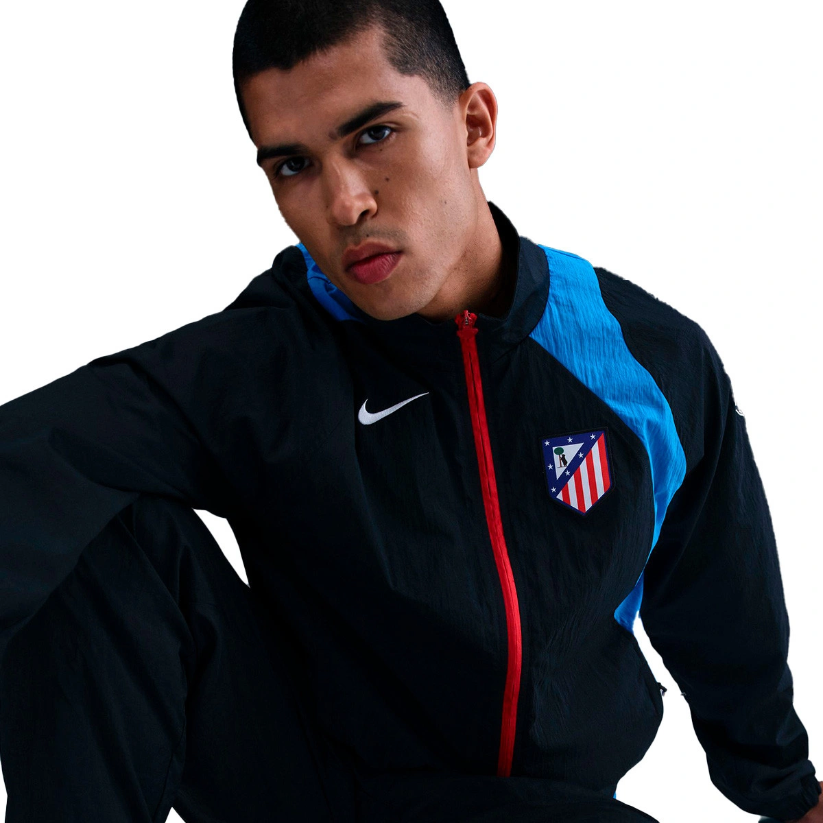 Cette veste de sport de l’Atlético de Madrid associe l’énergie des emblématiques tenues de football Nike du début des années 2000 à un style fonctionnel. Ses lignes courbes et asymétriques, combinées à une couche imperméable, créent un look idéal pour le match, aussi bien dans les tribunes que dans la rue.