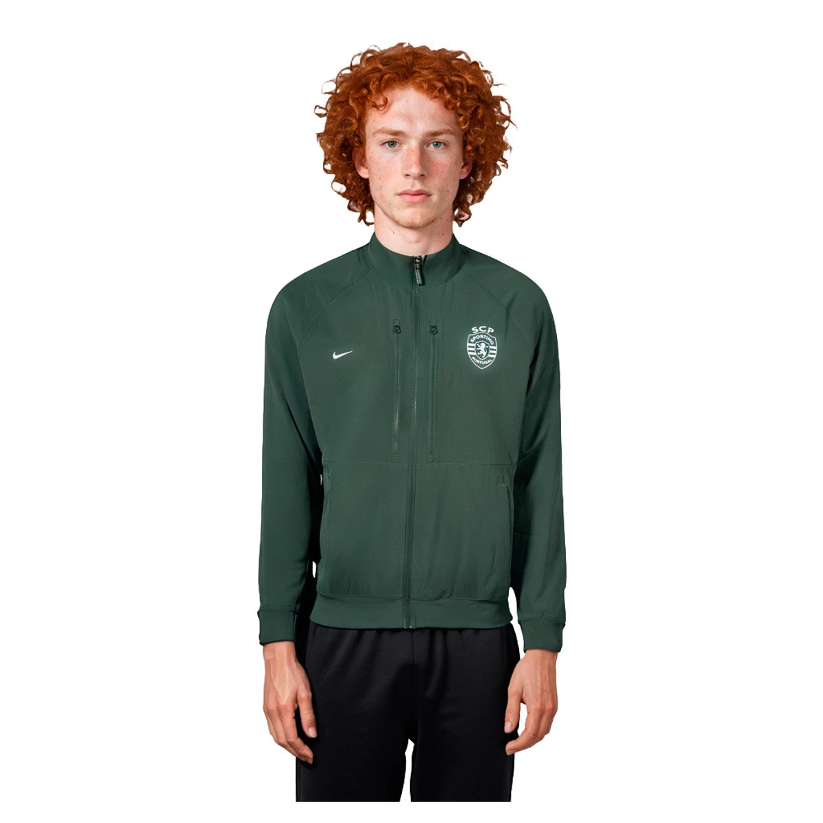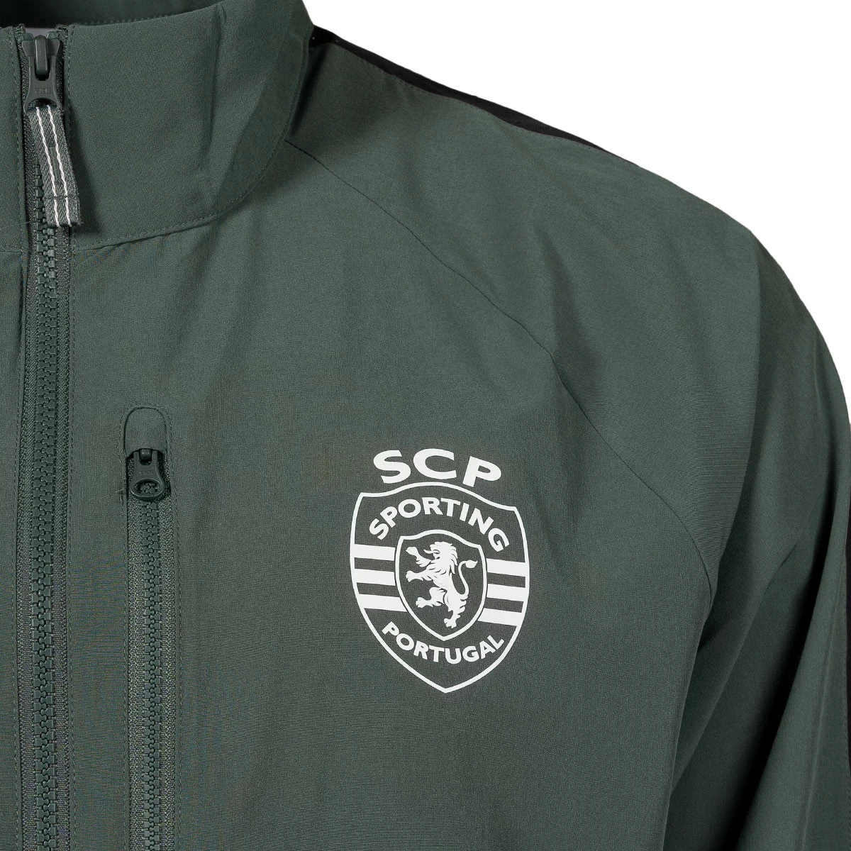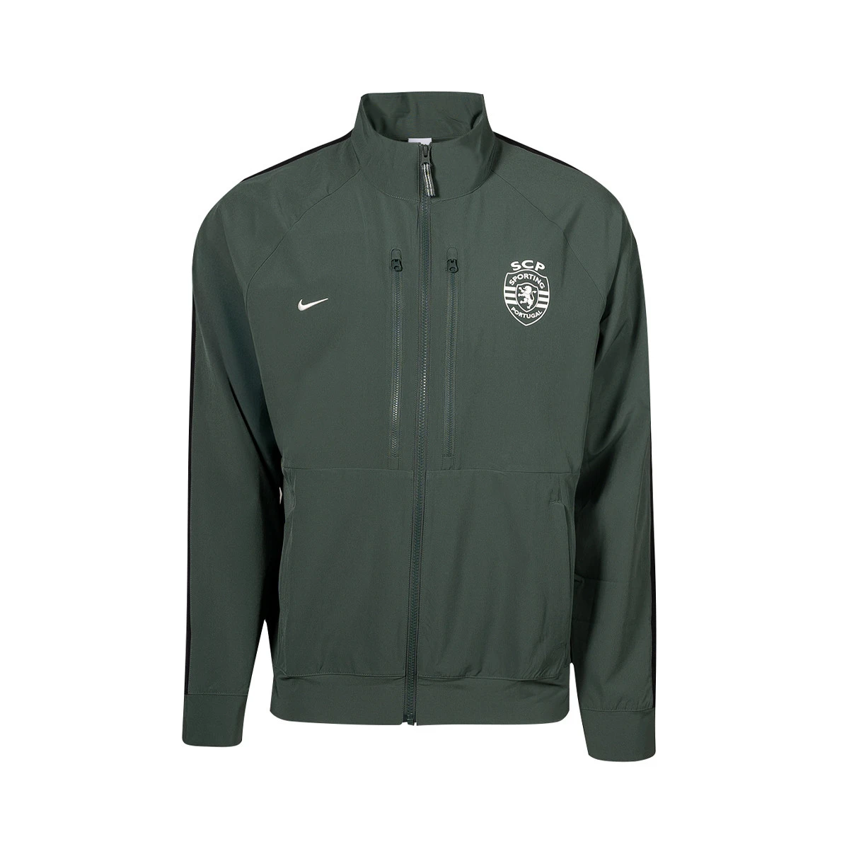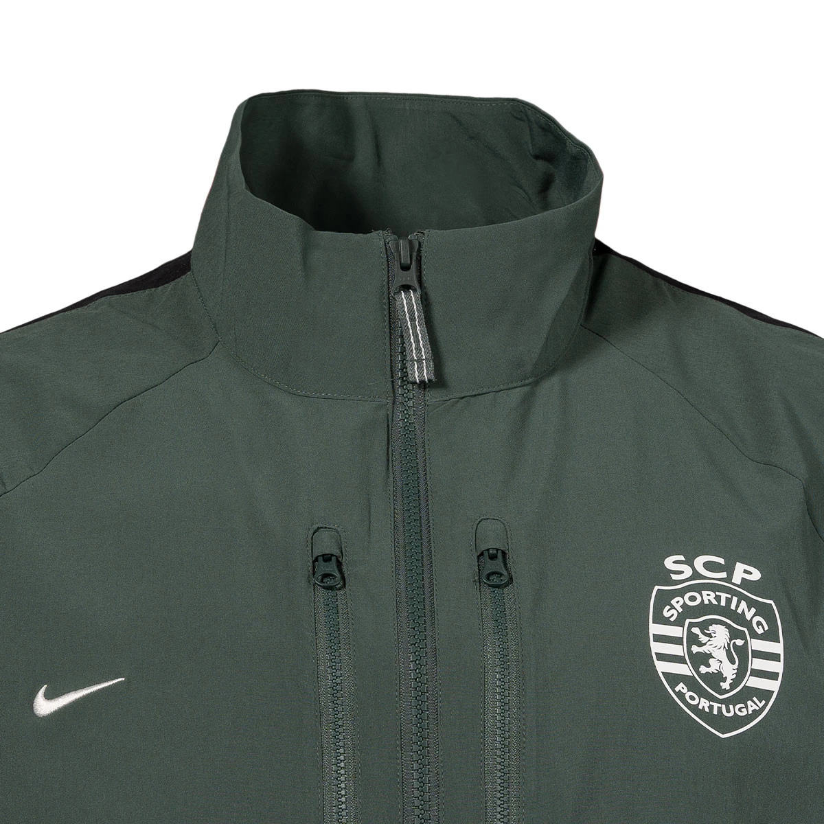 Veste d'avant-match du SC Portugal pour la saison 2024-2025. Le corps et les manches sont en tissu Nike Dri-FIT qui évacue la transpiration et aide les athlètes à rester au sec.
