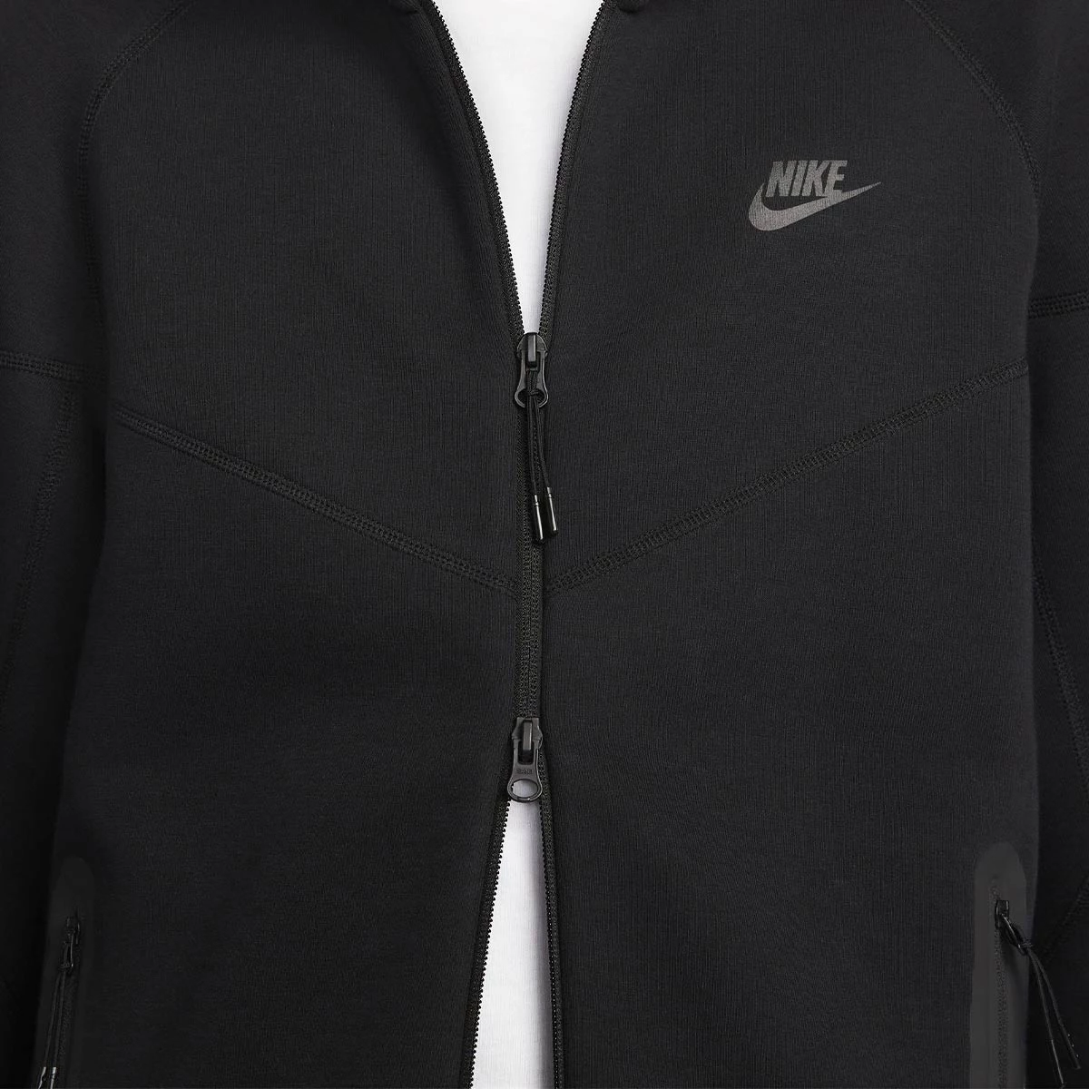 Poches zippées pour les mains avec le bord collé caractéristique de Tech Fleece.