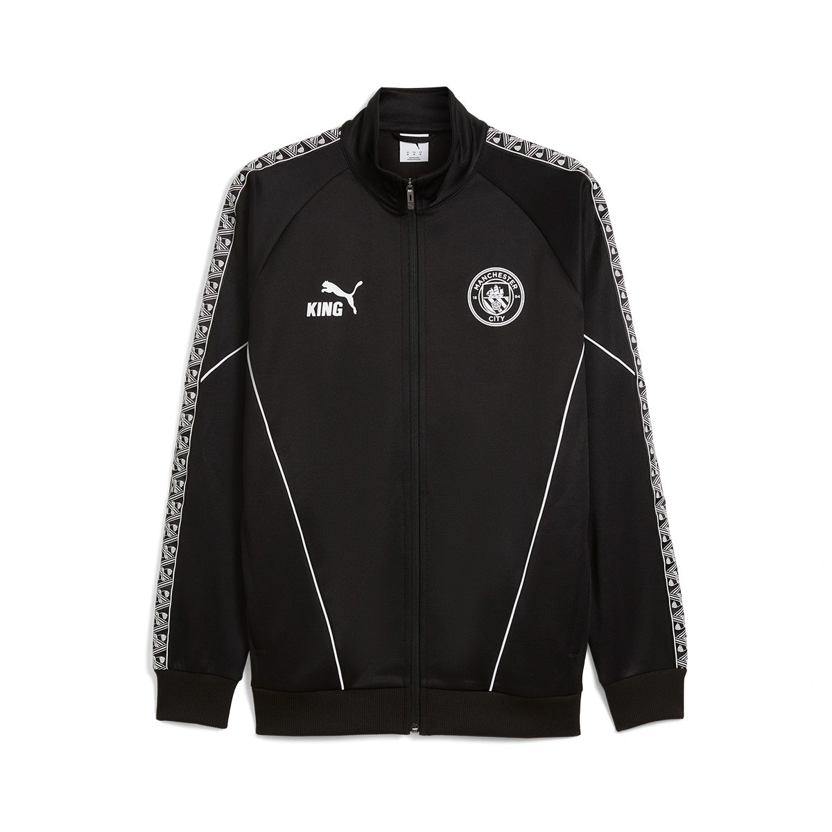 Prépare-toi pour le match avec style grâce à la veste Pre-Match KING Anthem de Manchester City. Coupe régulière avec design raglan pour une liberté de mouvement optimale. Avec le blason du City, le logo KING et des détails en caoutchouc sur les manches – idéal pour les supporters engagés.