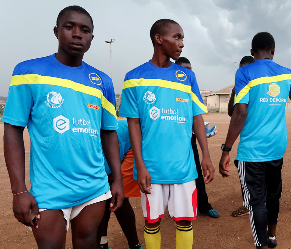 DHL, notre partenaire logistique, reçoit tout ce matériel et gratuit est en charge à des projets de sport du réseau dans lequel le football émotion fonctionne.