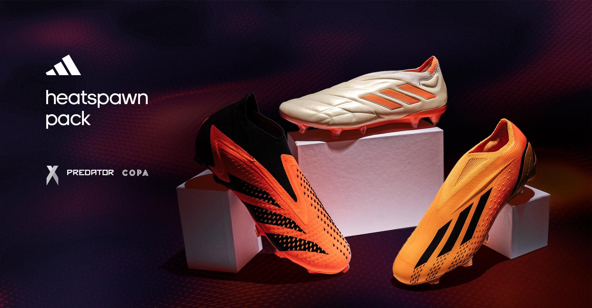 Les terrains du monde entier vont chauffer avec l'arrivée du nouveau pack adidas Heatspawn. L'orange est la star de la dernière collection de la marque allemande qui remplira les pieds de ses footballeurs de couleurs vives.