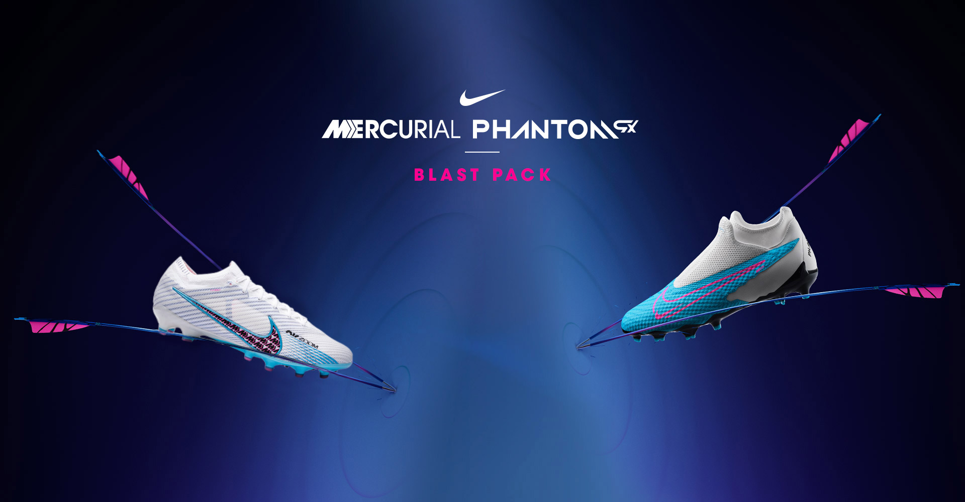 Les Phantom GX et Mercurial sont remplis de lumière et changent de look dans le nouveau Nike Blast Pack. Une merveilleuse combinaison de blanc et de bleu ciel donne naissance à la première collection de l'année de la marque américaine, qui présente également la Phantom GX comme principale nouveauté.