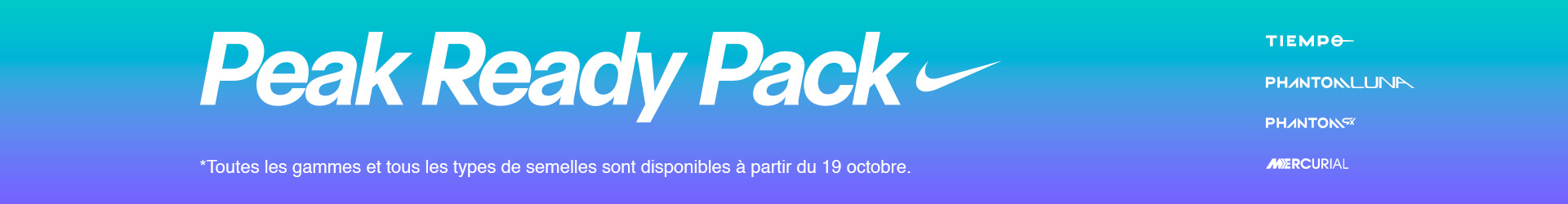 La nouvelle collection Nike est arrivée ! Une combinaison spectaculaire de couleurs dans des chaussures conçues pour vous guider vers le succès cette saison, Peak Ready Pack comprend les principaux silos de Nike : Mercurial, Phantom, Phantom Luna et Tiempo. Quatre modèles conçus pour mettre en valeur les caractéristiques de chaque type de joueur, lequel choisirez-vous ?