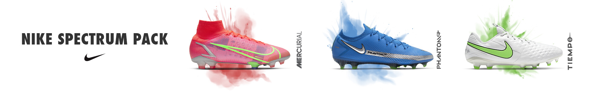 Voici le nouveau Spectrum Pack de Nike, avec lequel vous serez le meilleur sur le terrain. Les trois siles -Mercurial, Phantom GT et Tiempo- ont un attirant colorway. Style et technologie au service du joueur dans une collection qui ne vous laissera pas indifférent. Découvrez-la!