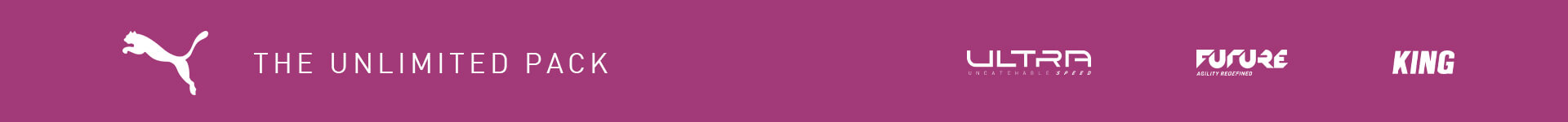 Vous voulez être unique sur le terrain ? Grâce à la nouvelle collection Puma, c’est désormais possible. Découvrez le Puma Unlimited Pack avec la nouvelle génération de Future teintées d’un violet spectaculaire, accompagnées des Ultra et King, chacune munie d’un coloris distinct. Il est temps d’atteindre les sommets avec les mêmes chaussures que portent les meilleurs footballeurs de la planète. C’est votre moment !
